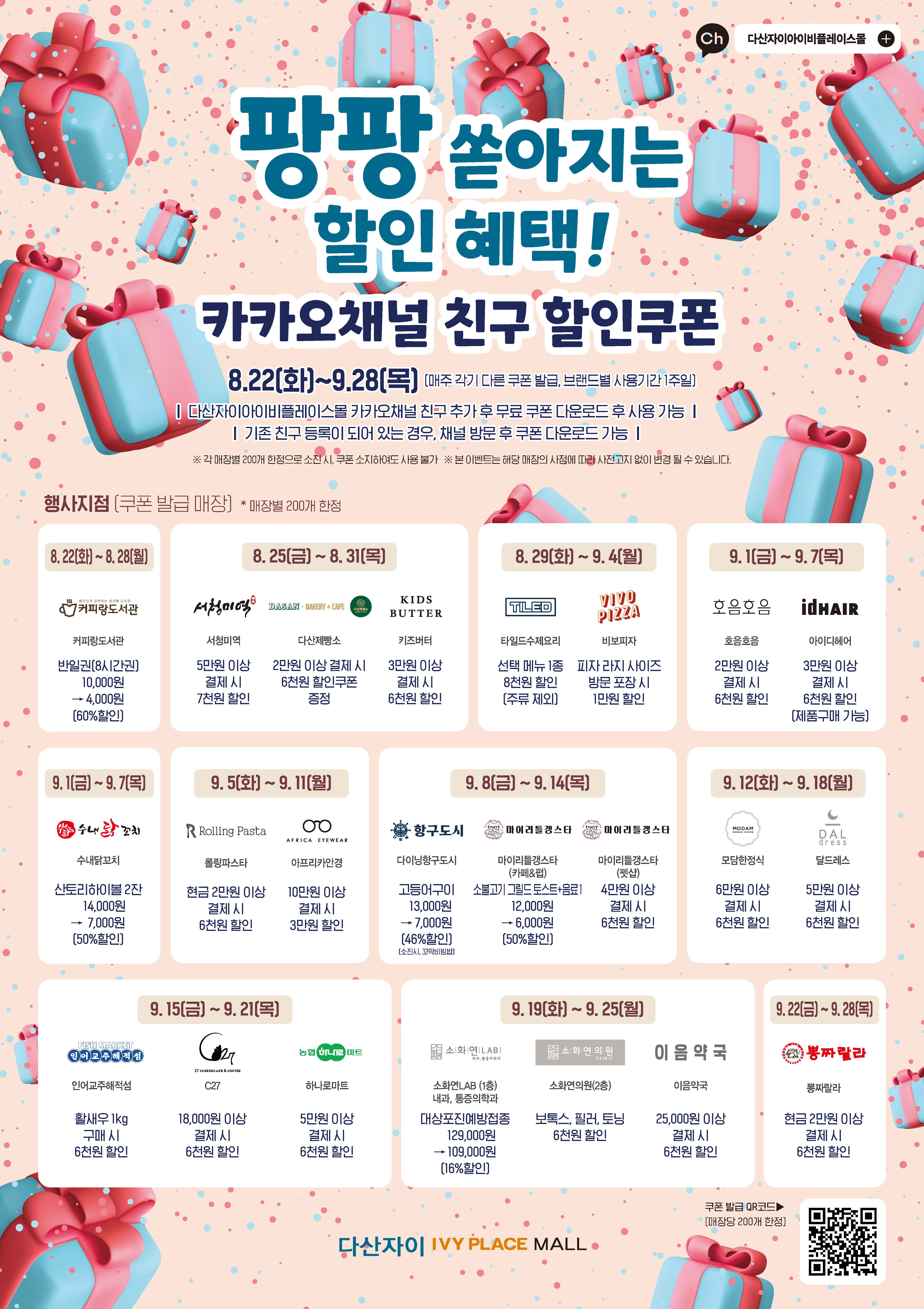 ✨카카오채널 친구할인쿠폰(8.22~9.28)